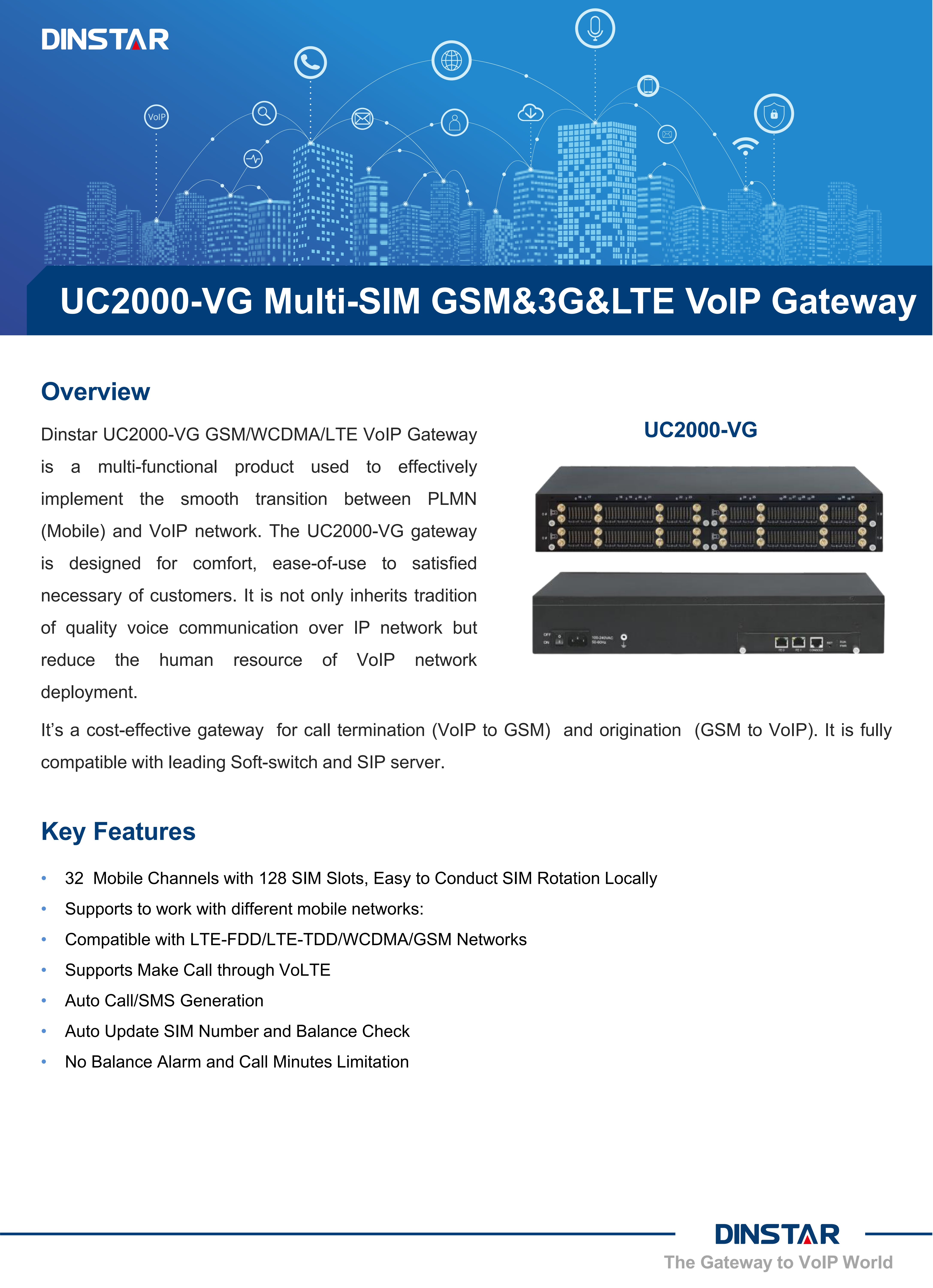 UC2000-VG-32T Multi-SIM 128 sim slot GSM Gateway