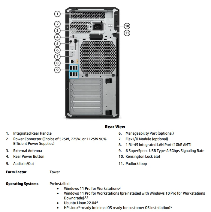 • POWER:1125 W internal power supply, up to 90% efficiency, active PFC -->Power 775W