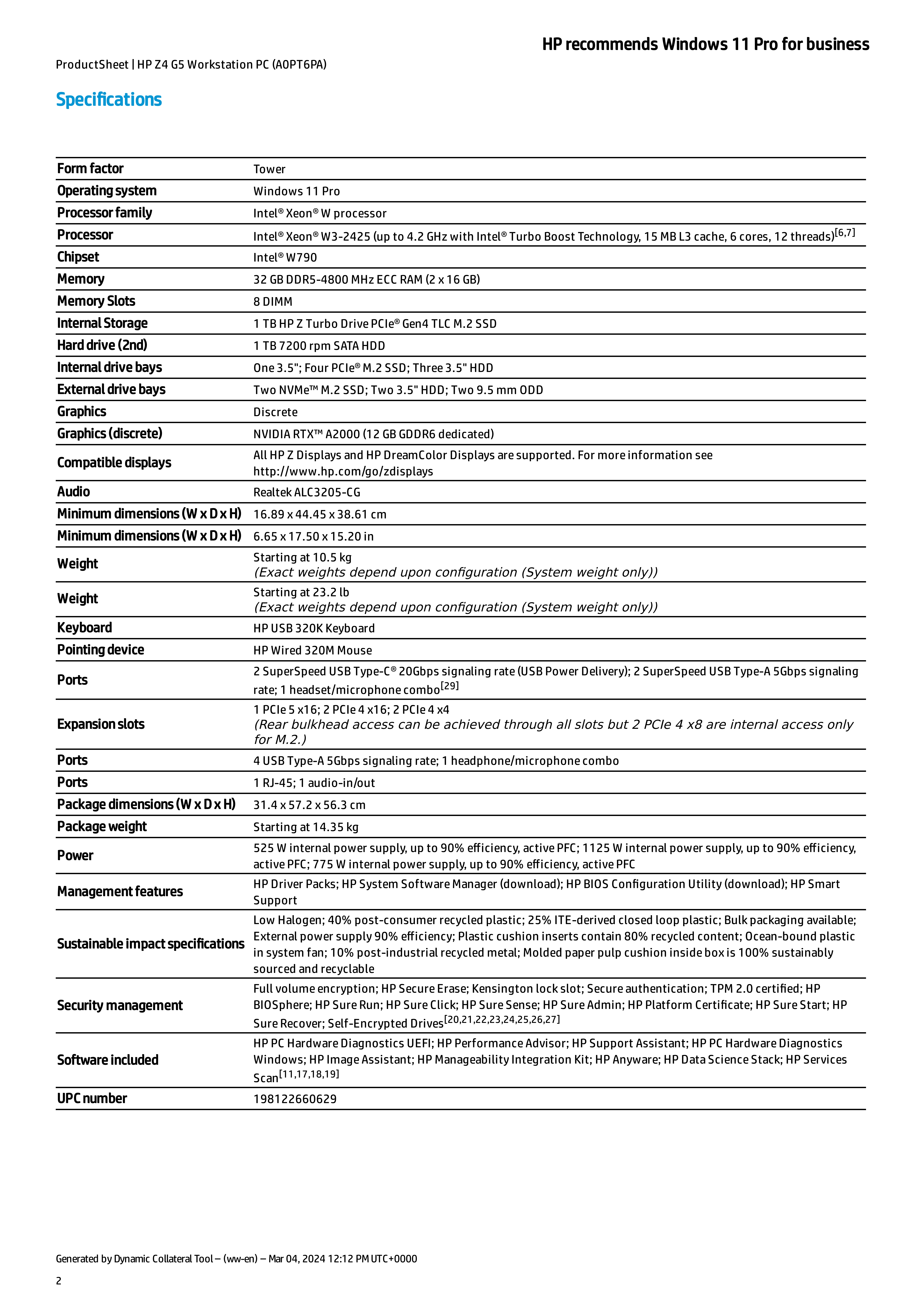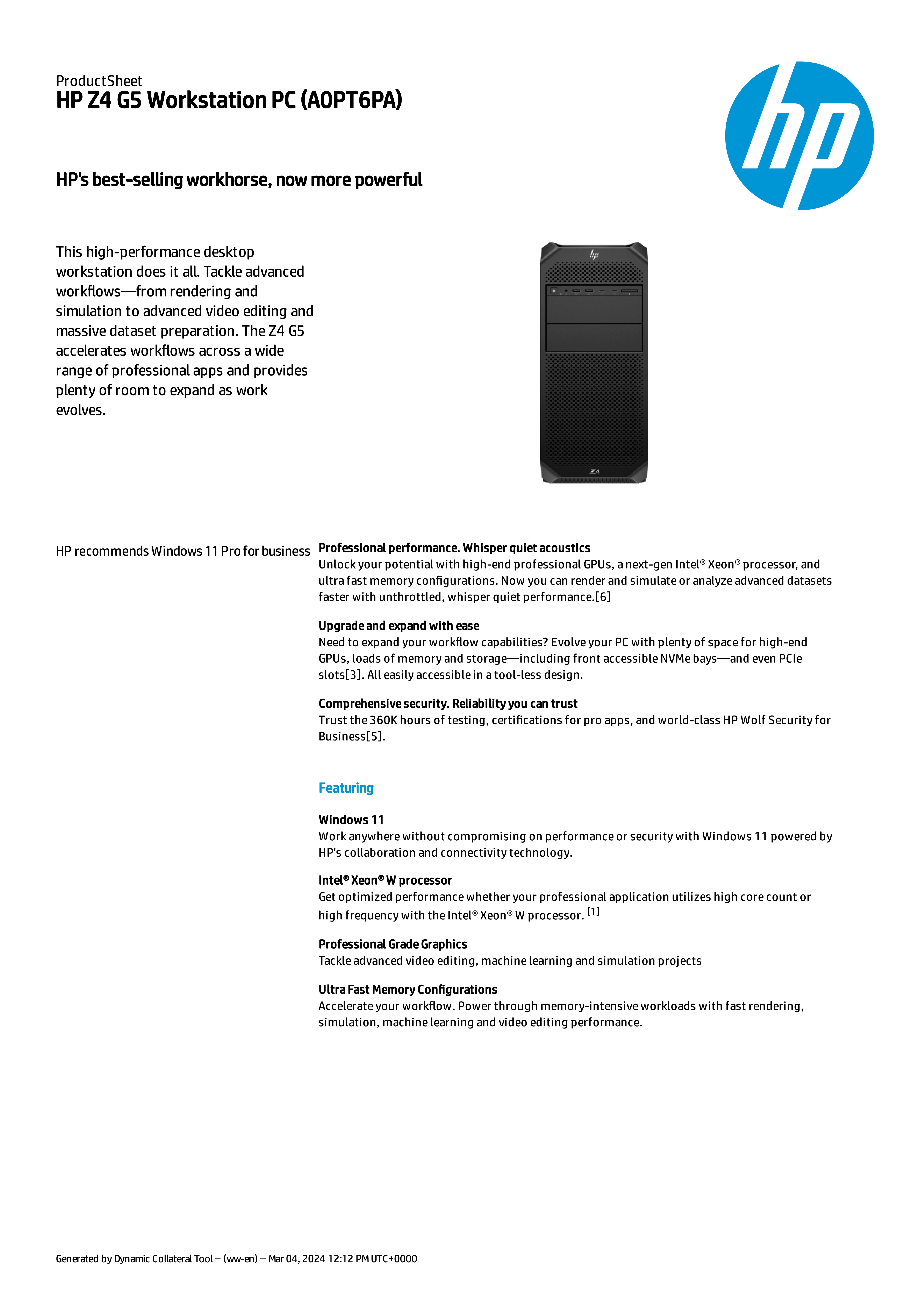 HP Z4G5 Workstation for AI_business & AI_development