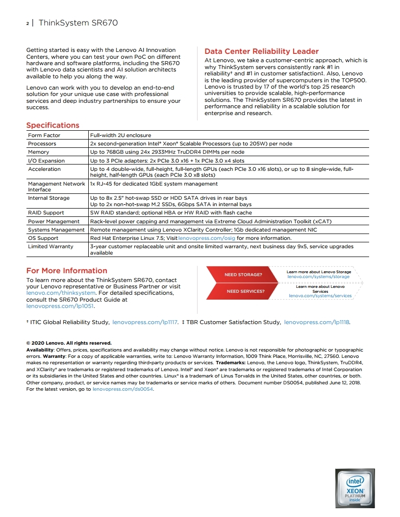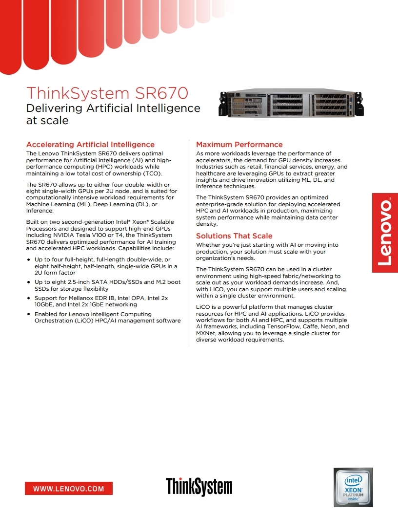 Lenovo ThinkSystem SR670 v1 Gold 6144 16 core Tru 16GB DDR4-2666p 1u rack server